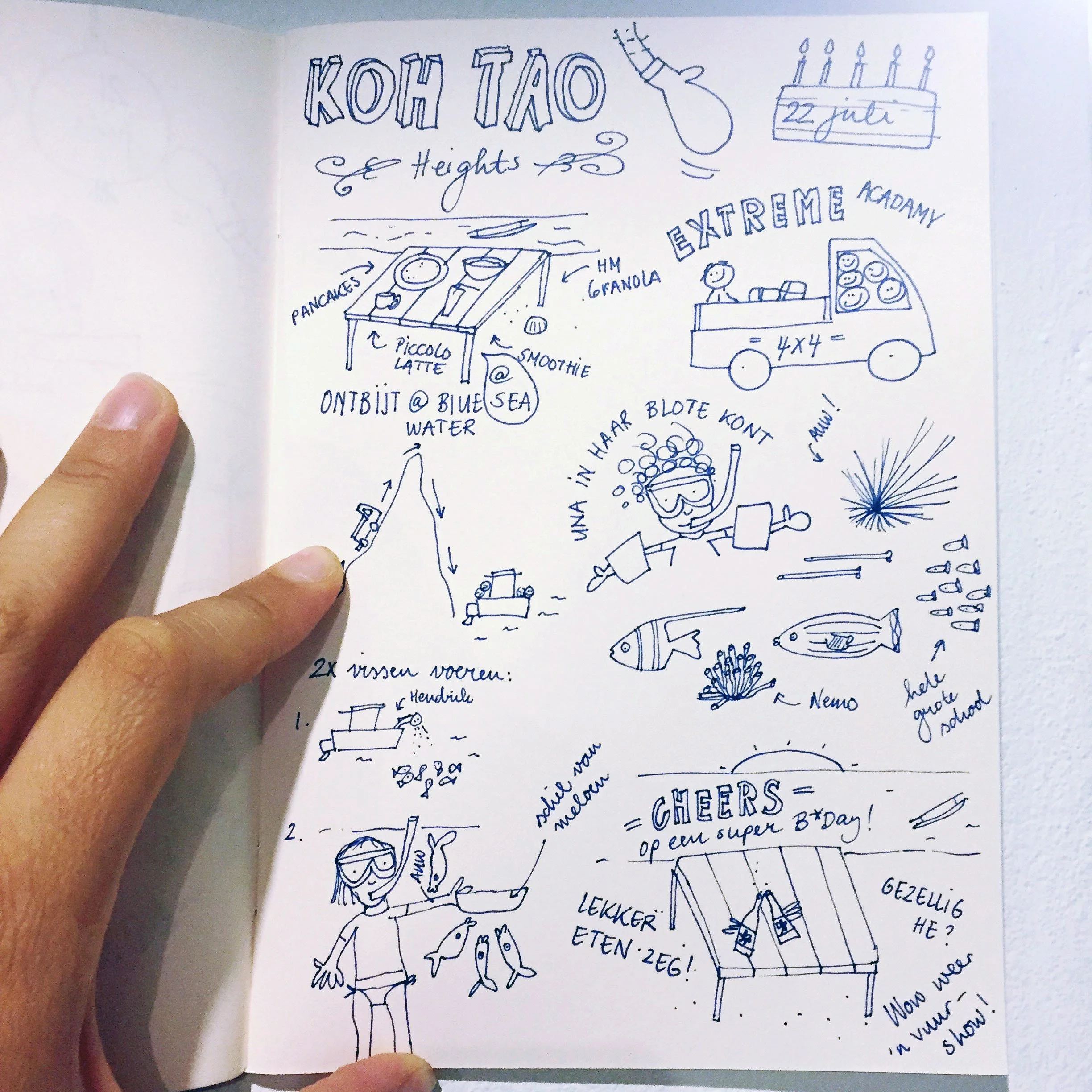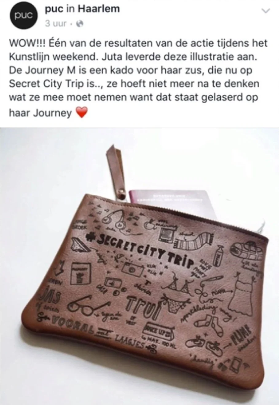 In het verleden heb ik verschillende dingen gedaan op het gebied van grafisch ontwerp. Van muur/krijt tekeningen bij De Buurtbakker, Cakeworks Studio, voor het blad Groter Groeien en op een kinderdagverblijf naar tijdschriften maken voor 50-jarigen, geboortekaartjes tekenen tot schoolkranten maken voor de Bos en Vaartschool en De Zuidwester. Ook heb ik in samenwerking met de Snijmeesters verschillende borrelplanken gemaakt en zelfs een leren Journey van PUC laten laseren met mijn tekeningen. Ik hou van tekenen, met de hand of op de computer, maar het leukste is toch als je je werk later nog tegenkomt in een winkel of bij iemand thuis.